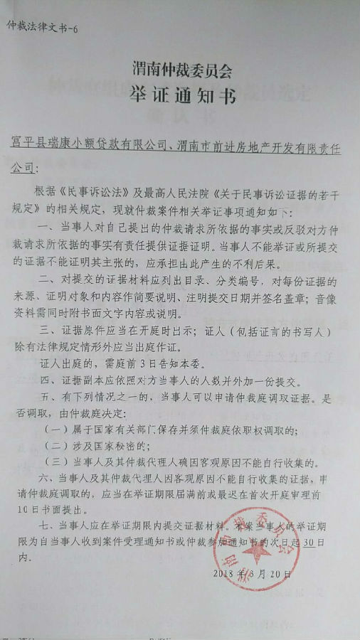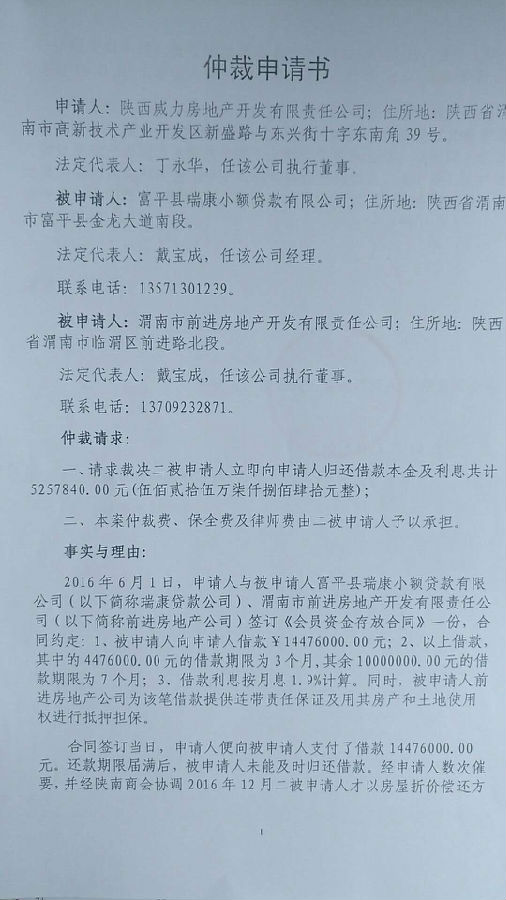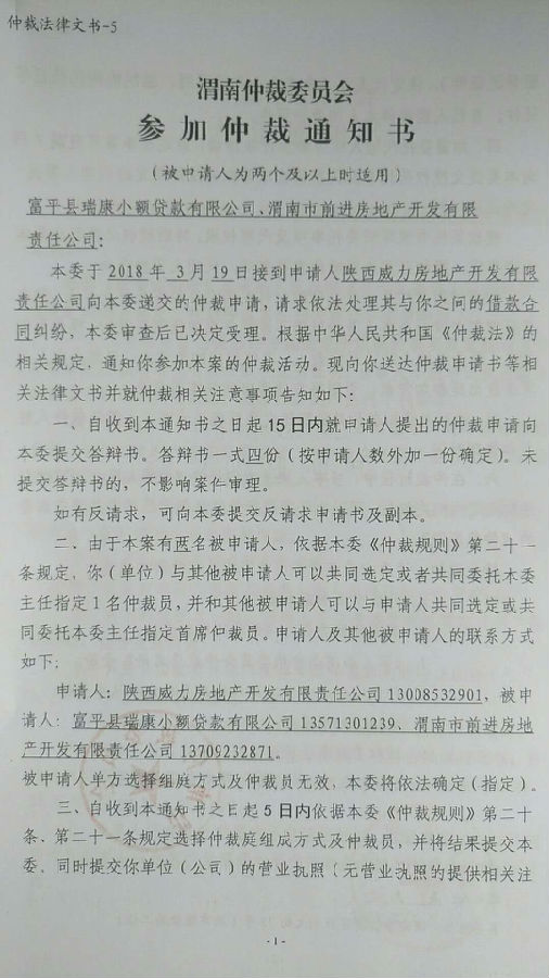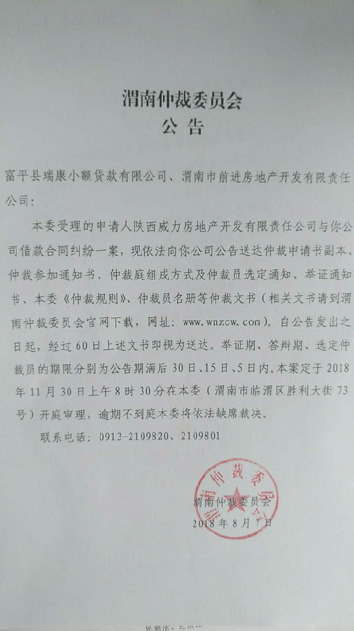 陜西威力房地產(chǎn)開(kāi)發(fā)有限責(zé)任公司與富平縣瑞康小額貸款有限公司、渭南市前進(jìn)房地產(chǎn)開(kāi)發(fā)有限責(zé)任公司一案公告