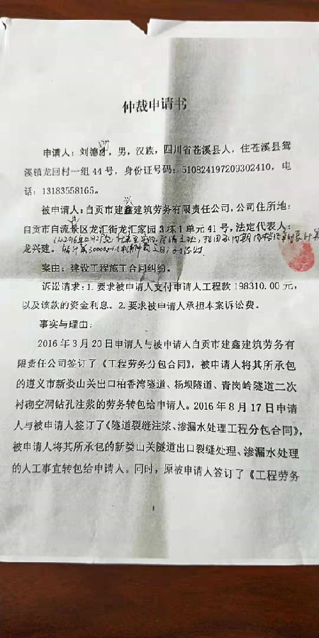 劉德財(cái)與自貢市建興建筑勞務(wù)有限責(zé)任公司一案公告
