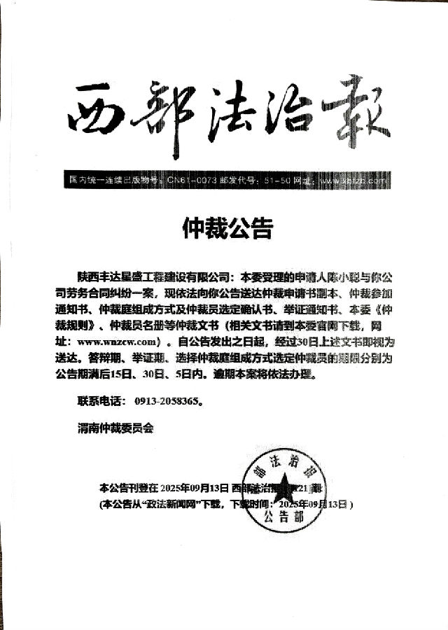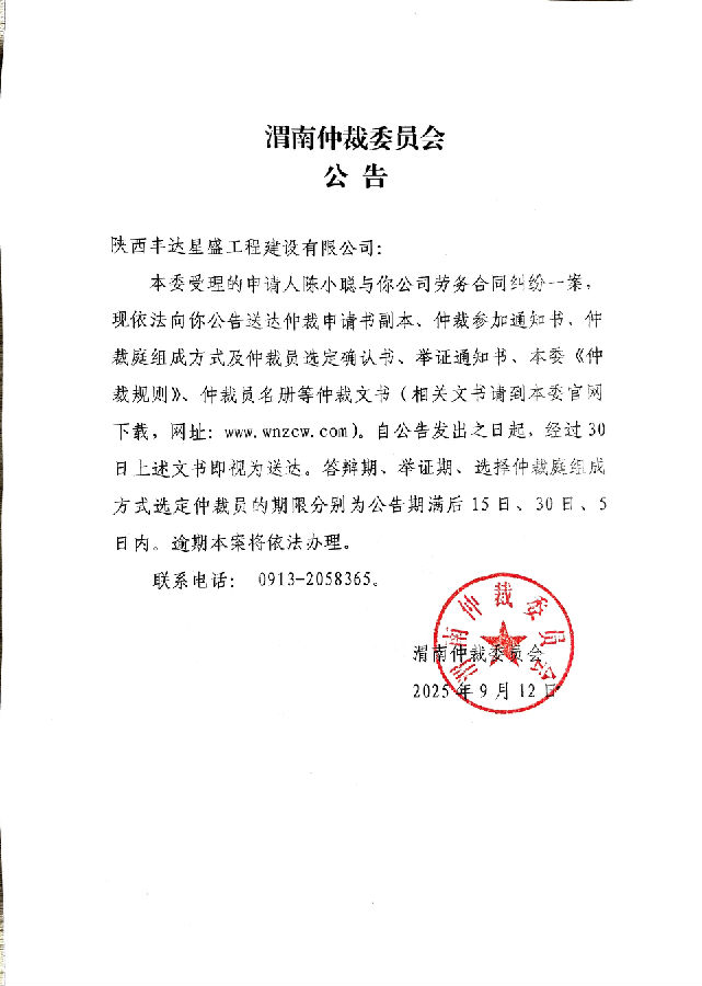 陳小聰與陜西豐達星盛工程建設有限公司勞務合同糾紛案公告